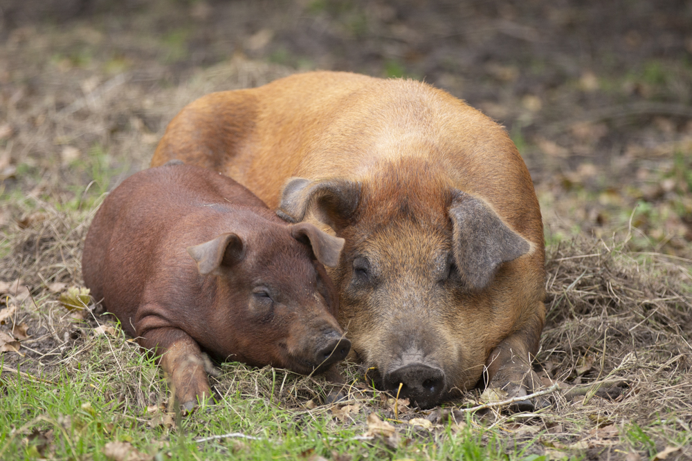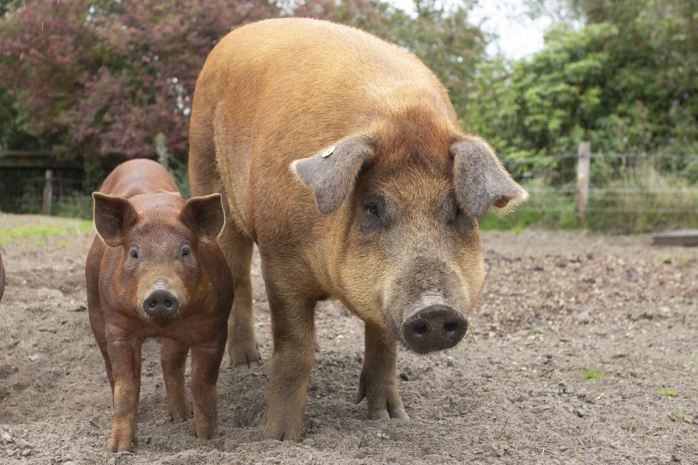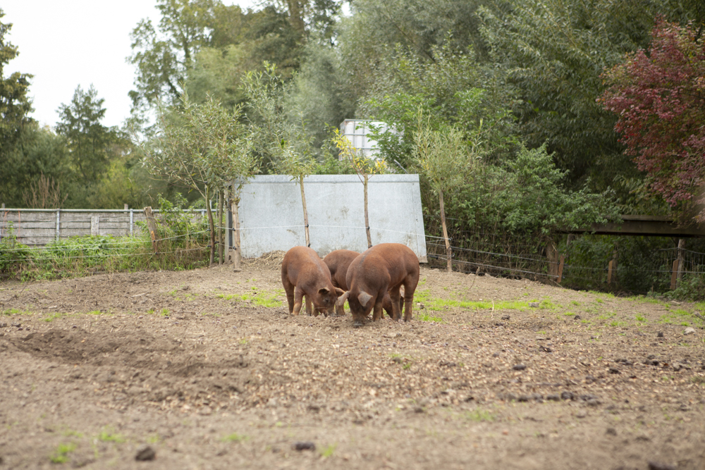 De varkens beschikken over een ruim perceel met voldoende mogelijkheden voor het naleven van hun natuurlijke gedrag. Ze worden gevoerd met zelfgeooste geplette granen, melkwei (een restproduct van het kaas maken) en reststromen.