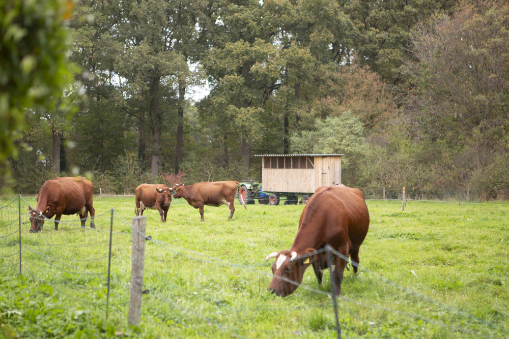 De runderen zijn van het ras Brandrood, een runder ras dat al vanaf begin 20e eeuw op de schrale Hollandse zandgronden en in het rivierengebied werd gefokt. Het is een sterk en zelfredzaam ras dat geen krachtvoer nodig heeft. Zoals alle oude rassen is het een dubbeldoel ras; koeien die worden gehouden zowel voor de melk als voor het vlees.