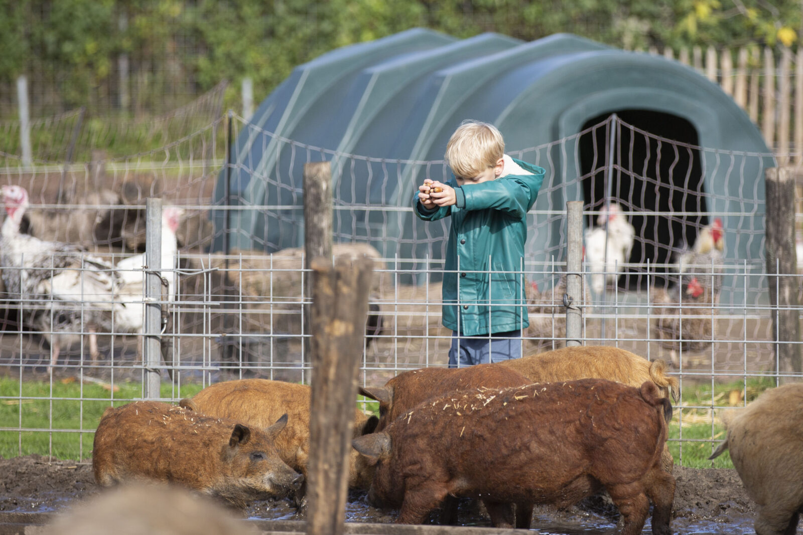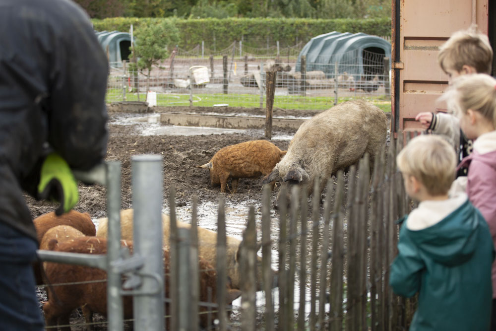 De boer en boerin van de Wijckse Hoeve kennen de dieren bij naam. In het voorbij gaan worden ze even flink gekroeld en je ziet aan de varkens ook dat ze dit gewend zijn. Het is een dagelijks ritueel. De dieren zijn enorm op hun gemak en je kunt zien dat ze goed verzorgd worden. Uiteindelijk worden de dieren wel gehouden voor hun vlees en Monique is daar ook heel transparant over: “De varkens gaan tussen de 18 en 24 maanden naar de slacht. Zonder stress, we parkeren de aanhanger waarin ze vervoerd worden 1 a 2 weken van tevoren in het weiland, waarna de varkens het al snel als slaapplaats gebruiken. Op de dag zelf zijn ze dan heel relaxed als we er naartoe rijden. We gaan ook altijd zelf mee, tot in de slachterij. Op deze manier is er geen stress bij de dieren. En natuurlijk vinden wij deze dag ook moeilijk, maar wij vinden dat als je dan een stukje vlees wilt eten, dat dat van een dier afkomstig moet zijn dat een goed en vrij leven heeft gehad. En op deze manier zorgen wij daarvoor.”