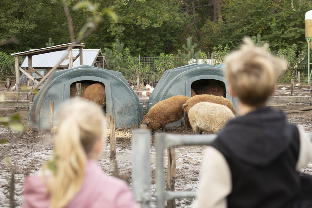 De varkens op de Wijckse Hoeve staan in groepen bij elkaar, meestal families. Het is een kleine boerderij met zo’n 30 tot 40 dieren. Ze kunnen met elkaar spelen, rennen, ruzie maken, zoelen (in de modderpoel rollen) en lekker suffen in het zonnetje. Het bezoek op de open dag zorgde ervoor dat de varkens wat onrustiger waren, want veel mensen, vooral kinderen hadden iets lekkers bij zich. Bij ieder nieuw bezoek lieten de varkens zich horen, “breng maar hier, dat lekkers!”